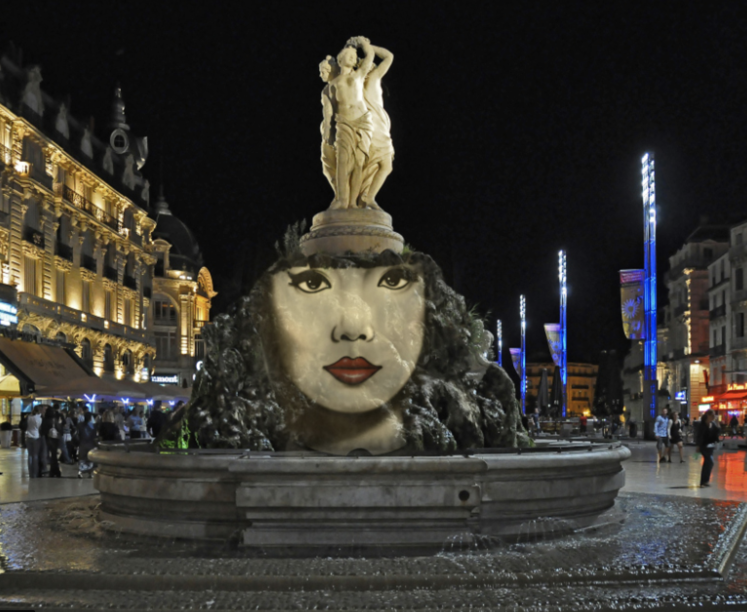 Ce travail s’intègre dans un autre travail, mené également en partenariat avec JC Menu, qui consiste à « rhabiller » tout simplement… Montpellier. Deux vues parmi d’autres proposées sur le site de l’artiste: http://bocaj.pictures/ .