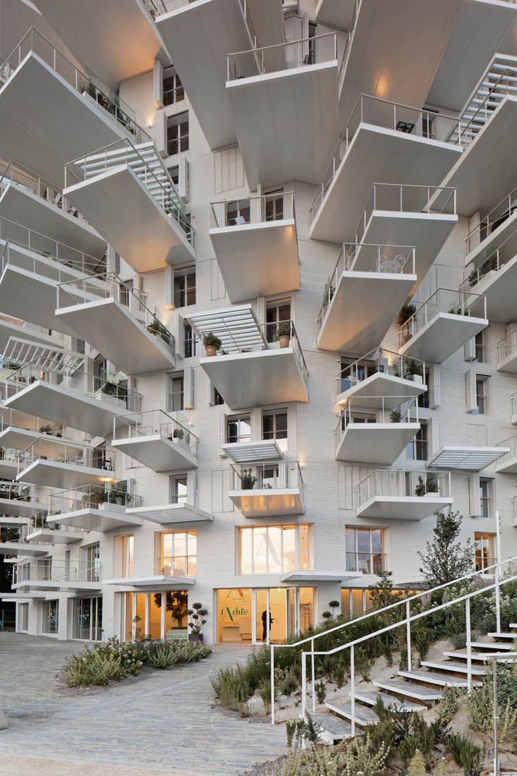 En dehors des 112 appartements répartis sur 17 étages, le bâtiment compte également des espaces communs, dont un restaurant et un espace dédié à l’art contemporain, la Serre, du collectionneur et mécène Gilbert Ganivenq, qui ouvre ici un deuxième lieu après l’ouverture du Réservoir à Sète.