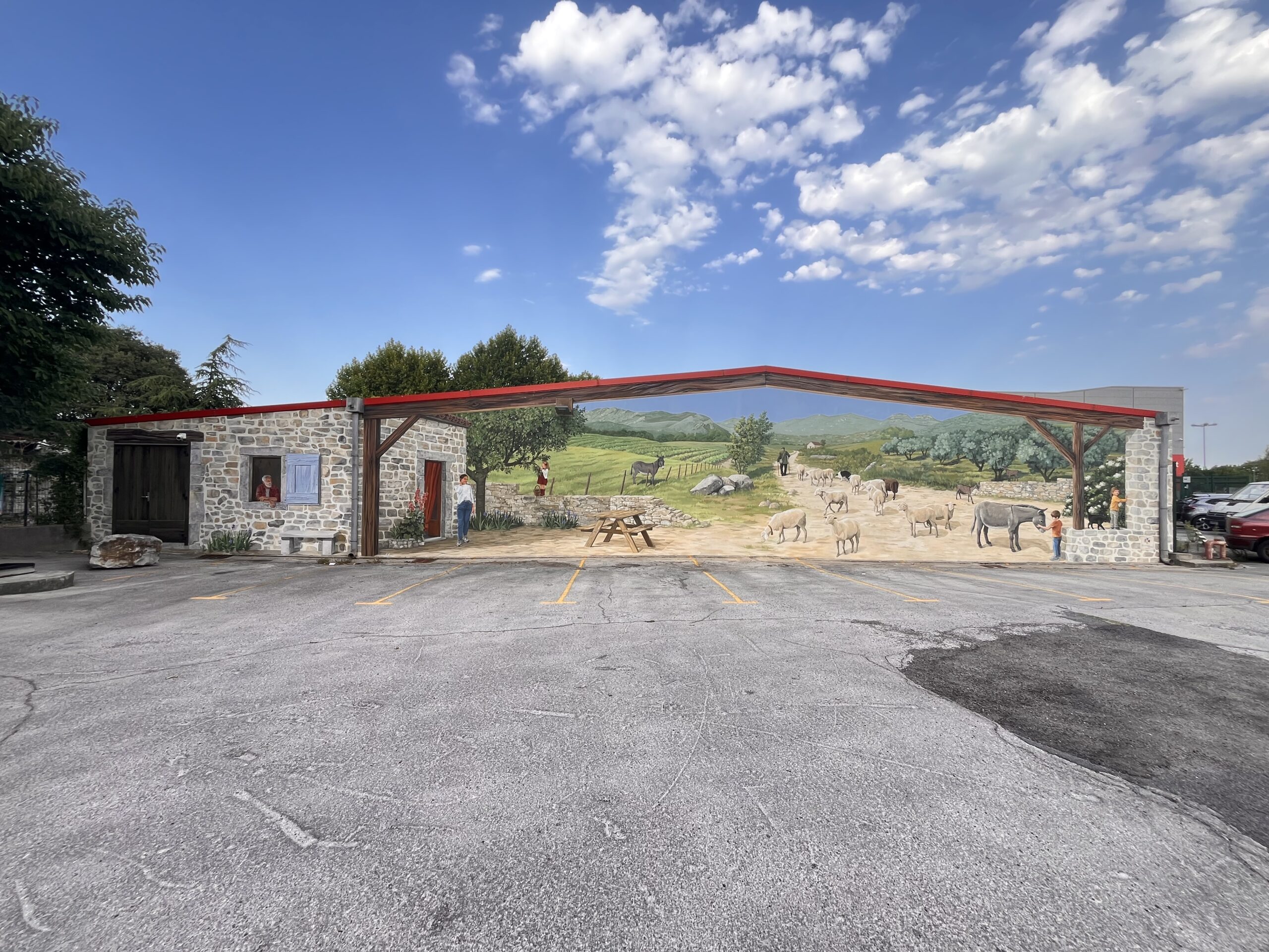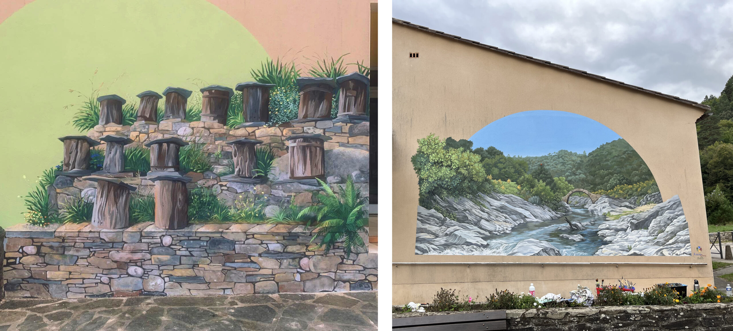Nous réalisons des fresques (fresques participatives, illustratives, et décoratives) et des trompe-l’œil dans tout le Sud de la France.