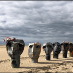 Les têtes sont parfois immenses. D’une teinte grisée, les visages aux traits volontairement simplifiés ont une apparence granitique qui en impose.