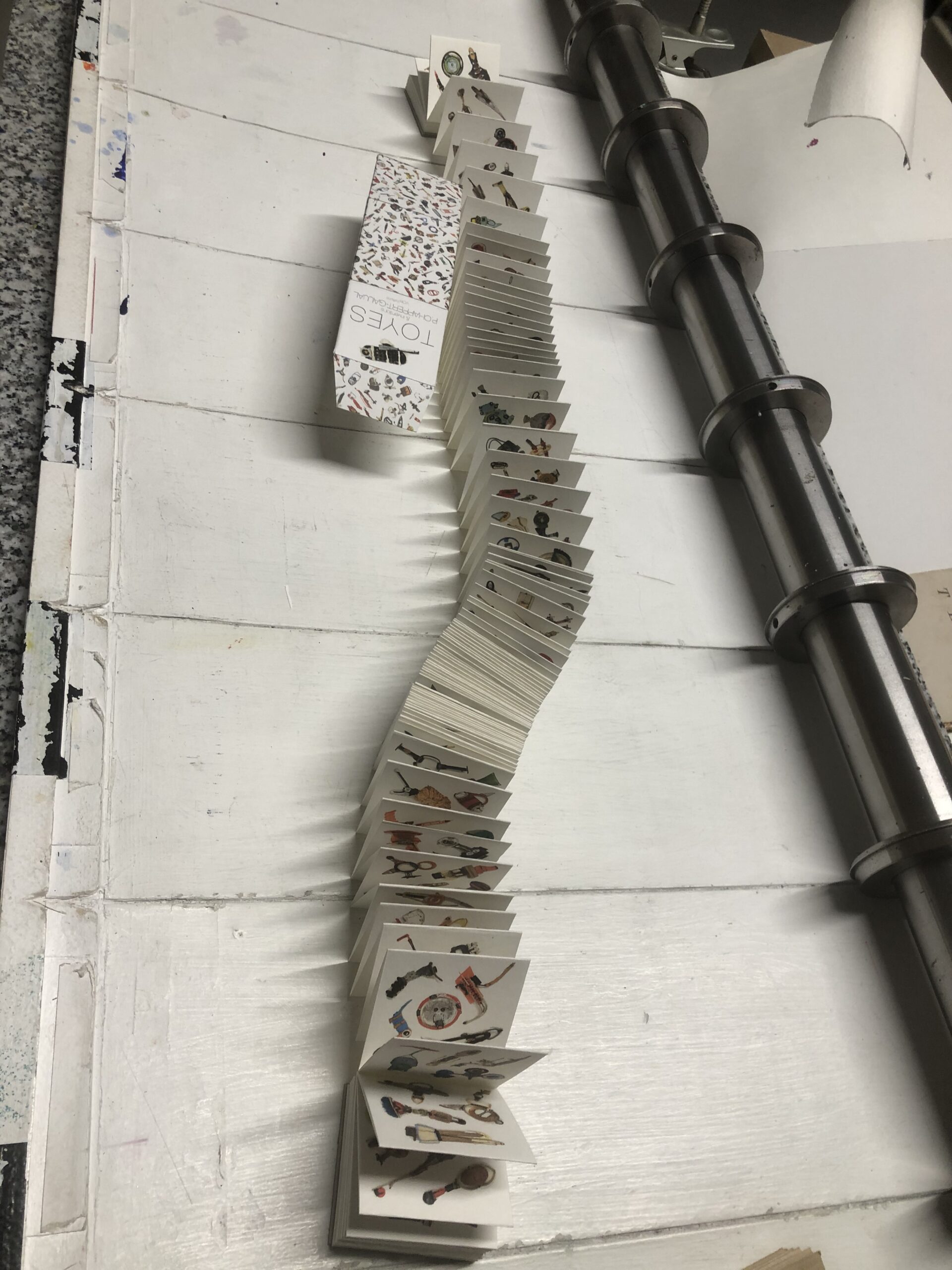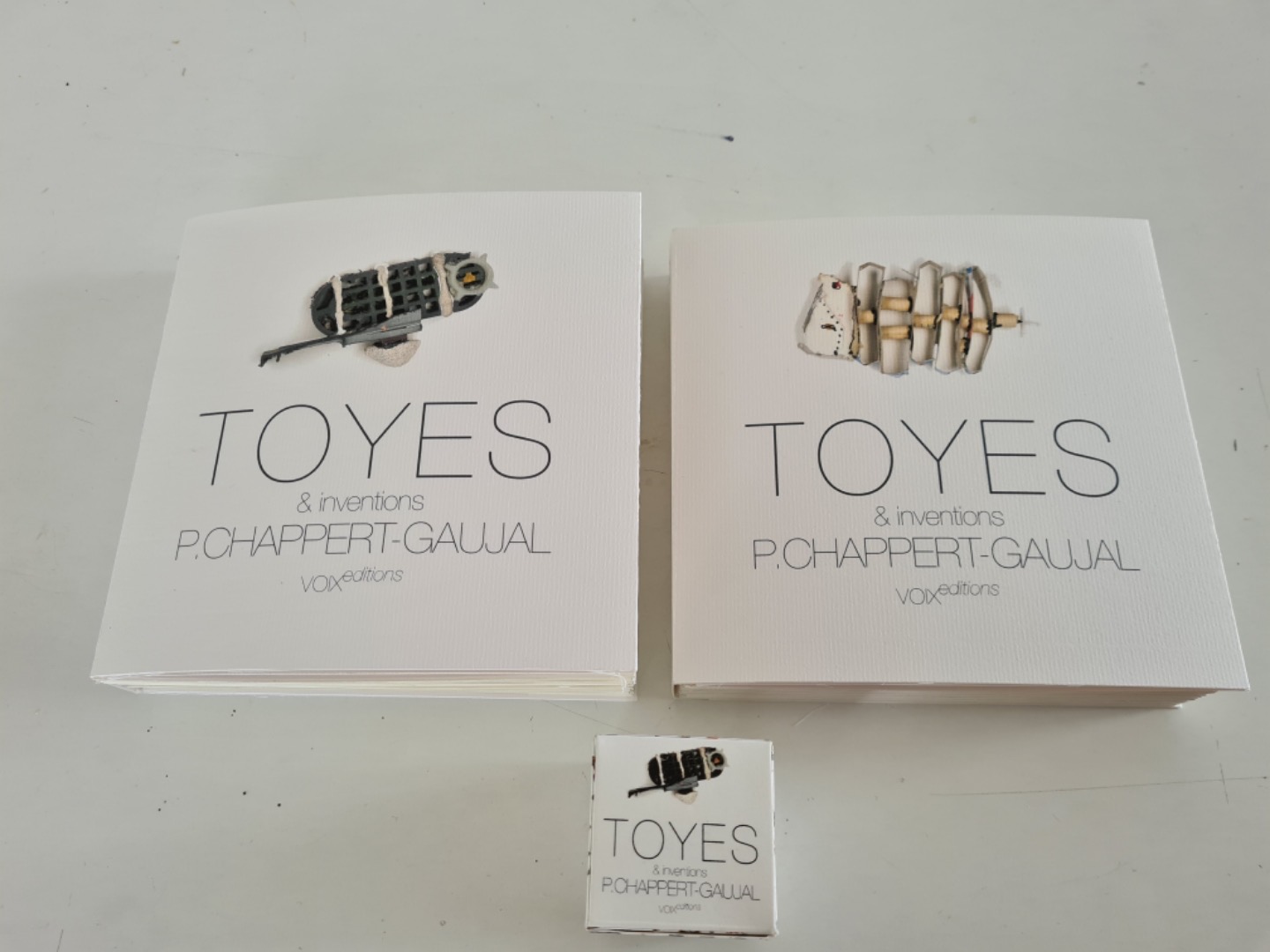 Le livre, Toyes et Inventions, paraît en trois format: un petit, un grand et le grand sera édité en édition limitée en leporello (livre accordéon)) avec emboitage et œuvre originale numérotée signée.