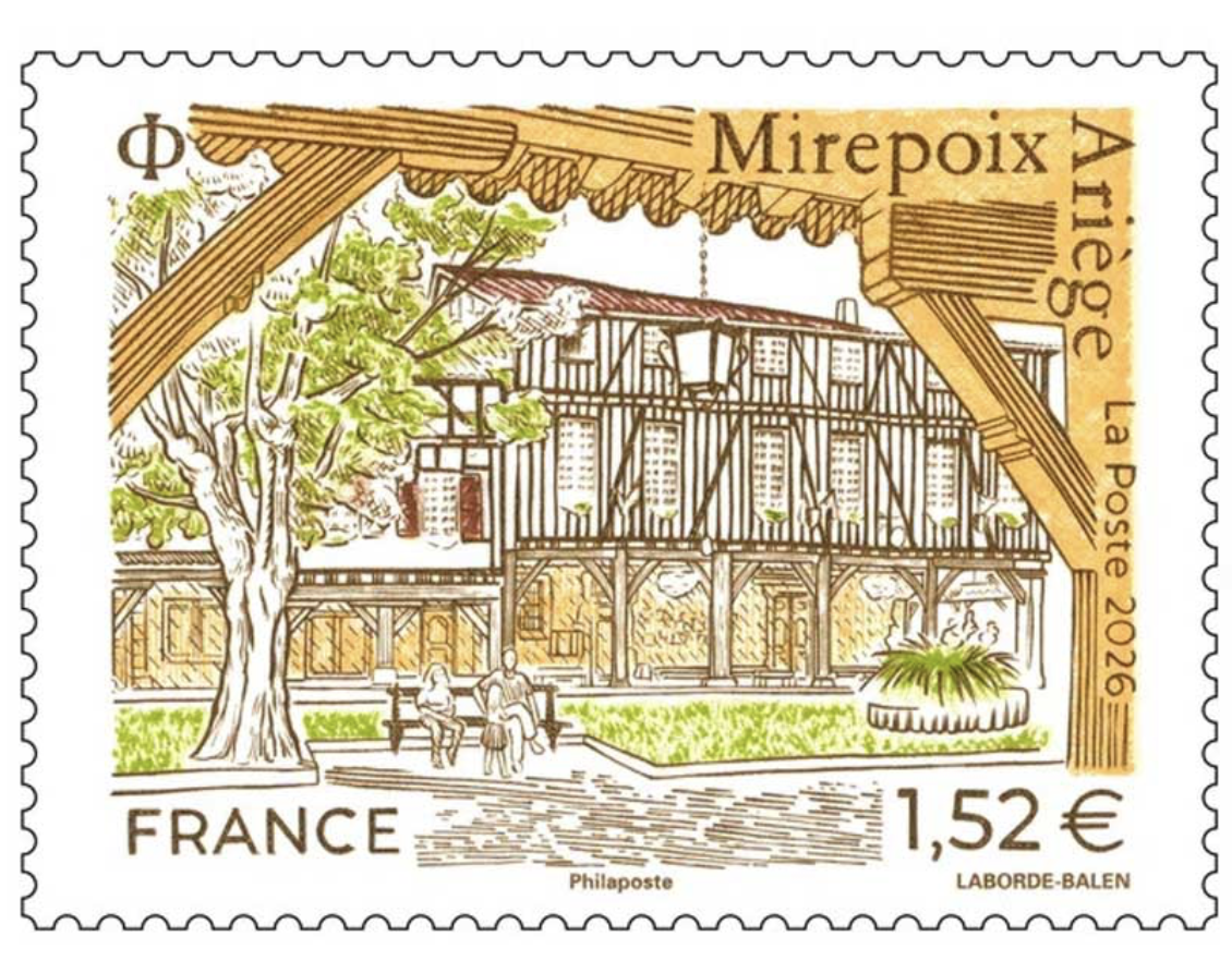 Depuis fin mars, la Poste propose ainsi un nouveau timbre qui représente l’emblématique place des Couverts de Mirepoix, avec ses colombages et ses façades multicolores, par le biais d’une gravure réalisée pour l’occasion et à l’échelle par le graveur audois Christophe Laborde-Balen.