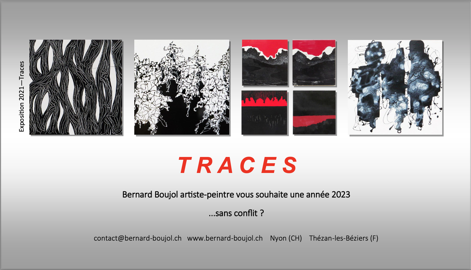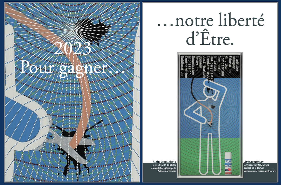 Innovation 2023: Nous ferons un sort particulier aux envois par la poste (mail-art, enveloppe artistique). Nous choisirons parmi ceux-ci les œuvres des trois artistes qui recevront chacun un livre de notre série, Artistes Occitanie, les 30 artistes de l’année (2020, 2021, 2022 ou 2023, au choix).