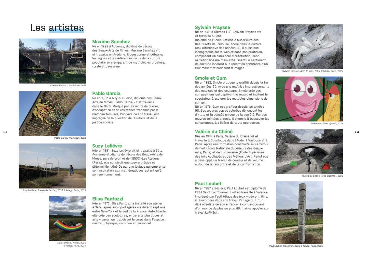 Le parcours comprend des œuvres de Valérie du Chéné, Elisa Fantozzi, Sylvain Fraysse, Pablo Garcia, Suzy Lelièvre, Paul Loubet, Maxime Sanchez et Smole and Gum.