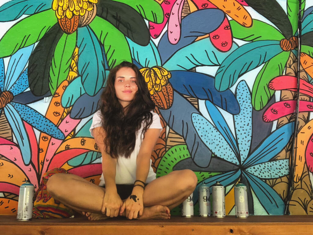 Née en 1987 à Barcelonette, Leona Rose est une artiste globetrotteuse, qui projette sur mur et papier de gigantesques jungles colorées. L’artiste puise son inspiration dans ses propres voyages en Asie et en Amérique Latine. L’artiste a déjà travaillé en collaboration avec des ONG comme Casa Guatemala, pour des hôpitaux ou des orphelinats.